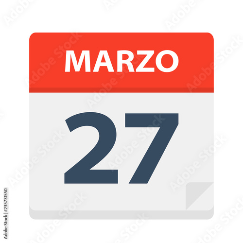 Marzo 27 - Calendar Icon - March 27. Vector illustration of Spanish Calendar Leaf