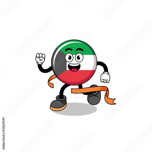 Mascot cartoon of kuwait flag running on finish line