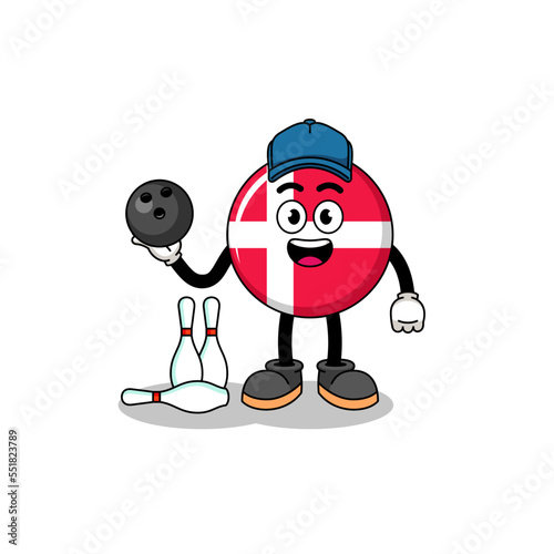 Mascot of denmark flag as a bowling player