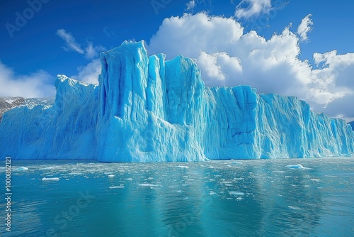 Massive blue iceberg in arctic waters. Rapid ice melt and urgent need for climate change mitigation efforts