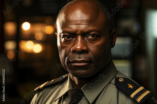 Mature african male security guard in surveillance room