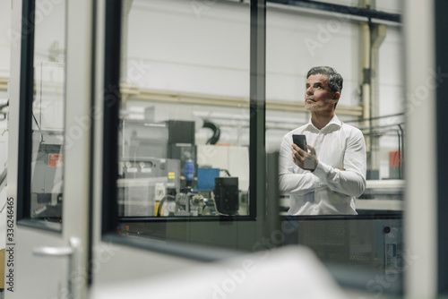 occupation, businessman, manager, entrepreneur, glass pane, mobile phone, holding, pensive, standing, life events, company, future, idea, industry, management, production, vision, economy, factory, indoor, portrait, employee, technology, business, machine, copy space, serious, inspiration, looking away, imaginative, contemplation, wireless, expertise, thinking, looking up, transparent, white shirt, executive, smart, smartphone, glasses, plant, enterprise, one person