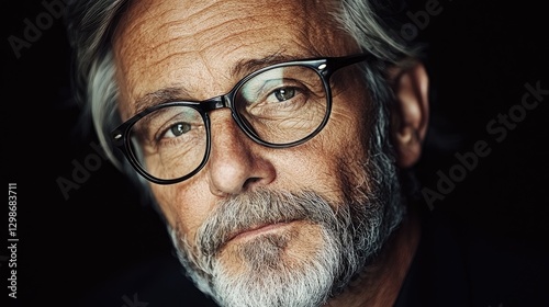 man, portrait, mature, thoughtful, expression, background, dark, website, profile, face, eye, goggles, beard, grey, hair, senior, male, person, old, adult, model, photogenic, people, human, image, photo, picture, photo, studio, lifestyle, look, emotion, serious, contemplative, wisdom, life events, age, elegance, style, fashion, attractive, confident, character, professional