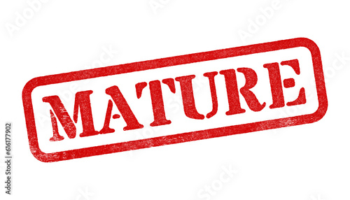 mature, rubber stamp, word, red, stencil, seal, ink, realistic, isolated, vintage, distressed, grunge, old, print, text, written, effect, layer, overlay, textured, mark, worn, eroded, label, signs, sticker, rectangle, certified, block, border, contour, organic
