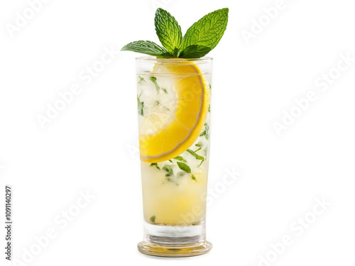 tall, glasses, garnished, slice, lemon, sprig, mint, drink, isolated, transparent, background, zesty, curvy, cocktail, beverage, cold, refreshment, party, bar, liquid, summer, mixed, cool, celebration, garnish, nobody, tasty, black, water, closeup, club