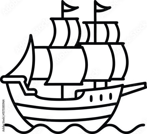 Mayflower ship line art vector illustration