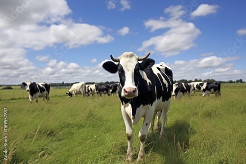 Meadow Grazing of Vache Normande Cattle in the Countryside of France Producing Milk for Milkmaids