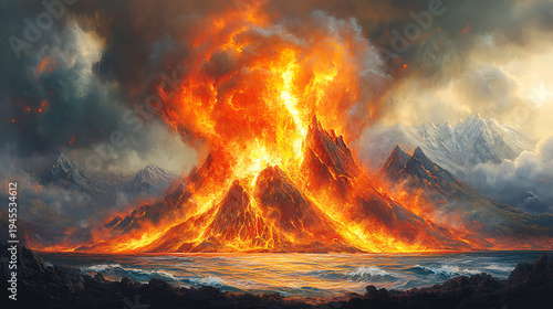 mechanism, volcanic, eruption, leaving, behind, deposit, illustrated, realistic, styled, white, background