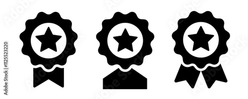 medal, icon, set, badge, reward, award, vector, silhouette, collection