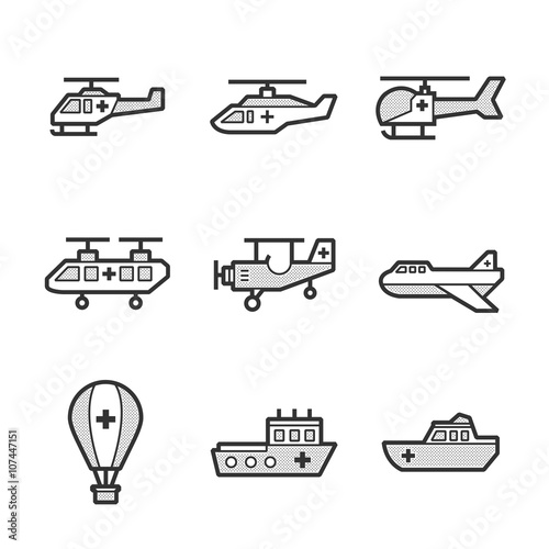 Medical Ambulance aircraft and ship set icons