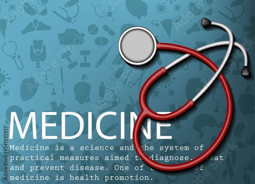 Medical design for the design of hospitals and sites. Medical equipment. Red stethoscope or phonendoscope. Medical instrument. Stock vector.