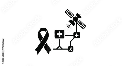 medicals, health care, awareness, ribbon, black, symbol, satellite, communication, network, cross, health, care, support, disease, disease, cancer, technology, icon, white, background, graphic, illustration, vector, signs, concept, image, photo, stock, creative, design, content, visual, professional, quality, commercial
