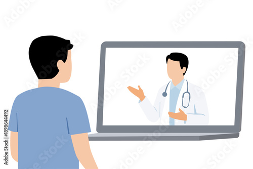 Medical Healthcare service concept with doctor using digital tablet, abstract medical interface, simple shapes, flat design, corporate medical colors, minimal detail, suitable for vector redraw
