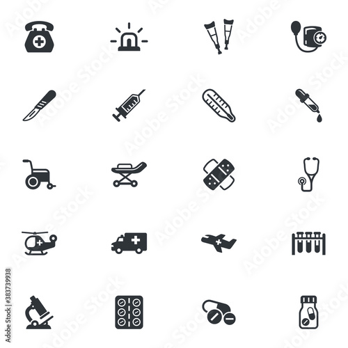 icon, medicals, health care, supply, equipment, supply, hospital, emergency, health, ambulance, siren, crutch, crutch, scalpel, injection, vaccine, syringe, thermometer, pipette, dropper, wheelchair, stretcher, bandage, stethoscope, microscope, experiment, laboratory, laboratory, medicine, medication, drug, pill, set, vector, symbol
