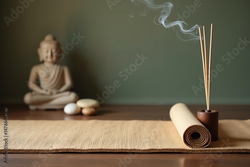 infuriated, yoga, mat, buddha, statue, peace, meditation, zen, spiritual, ritual, relaxation, wellness, health, calm, serene, quiet, mind, mindfulness, buddhism, belief, religion, religious, smoke, stick, aroma, therapeutic, therapy, holistic, health care, wooden, wood, artifact, object, background, interior, home, table, floor, exercise, practice, tradition, traditional, posture, deity, tranquil, balance, sharpened, body, soul