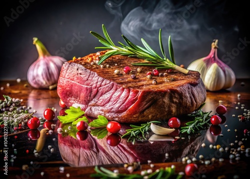 Medium Rare Beef Steak Night Photography on Transparent Background for Cooking and Grilling, Ideal Ingredients for Culinary Creations