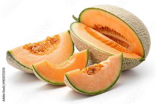 Melon with slices isolated on transparent background