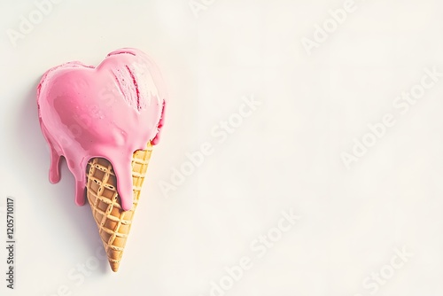 Melting Heart Shaped Ice Cream Cone with Dripping Cascades on Clean White Background
