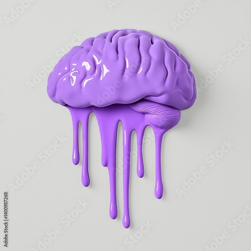 brain, purple, melting, abstract, surreal, glossy, dripping, grey, background, three-dimensional, anatomy, medicals, art, creative, design, concept, illustration, digital artwork, texture, colours, shape, form, mind, thought, idea, imagination, psychology, neuroscience, science, unusual, unique, modern, contemporary, artistic, stylish, aesthetic, intriguing, thought provoking, enigmatic, mysterious, abstract art, digital illustration