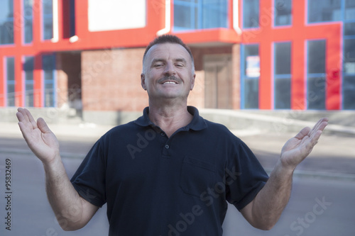 man, portrait, male, smiling, man, adult, person, photogenic, happy, smile, 1, human, hair, healthy, grey, middle, looking, people, camera, outdoors, caucasian, attractive, face, casual attire, 40s, horizontal, satisfaction, toothy, aged, mature, beauty, elderly, street, colours, senior, closeup, active, 50s, building, building, moustache, background, market