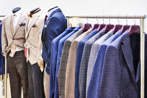 Men's suits in clothing store