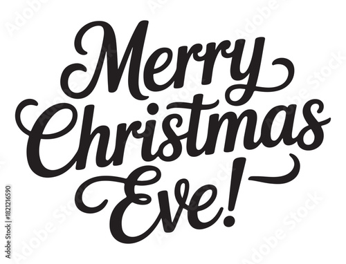 christmas eve, merry christmas, lettering, typography, text, holiday, festive, celebration, greeting, season, seasonal, vector, illustration, design, graphic, decorative, ornament, card, invitation, poster, banner, isolated on white, black-and-white, elegant, script, handwritten, font, message, december, winter, christmas, eve, party, event, calligraphy, vintage, retro, holiday season
