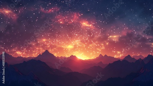 fireworks, night, sky, mountain, landscape, star, explosion, holiday, nature, outdoors, event, scenic, environment, display, light, dark, galaxy, comet, abstract, minimalist, three-dimensional, rendering, digital, art, independence, day, drama, vibrant, majestic, serene