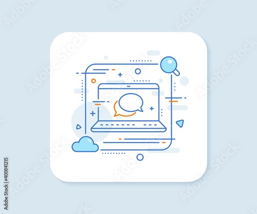 Messenger line icon. Abstract vector button. Speech bubble sign. Chat message symbol. Messenger line icon. Laptop concept badge. Vector