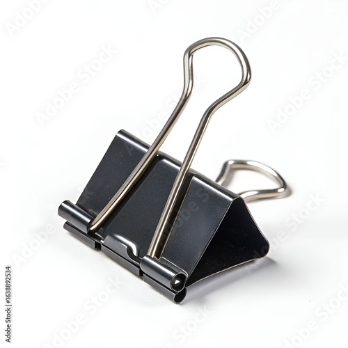 Metal binder clip with black handles isolated on white background