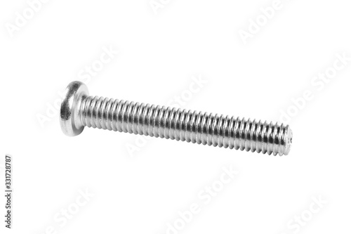 Metal bolt isolated on white background. Chromed screw bolt isolated. Steel bolt isolated. Nuts and bolts. Tools for work.