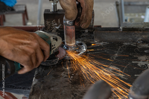Metal Grinding Sparks in Industrial Workshop