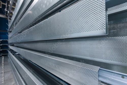 metal painting shop, parts ready for painting, perforated metal profiles