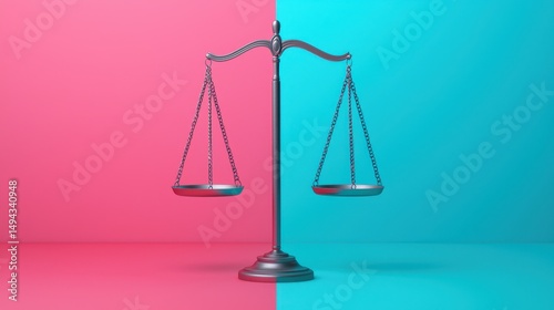 Metal Scales of Justice on Pink and Blue Background with Modern Design Elements for Legal Concept