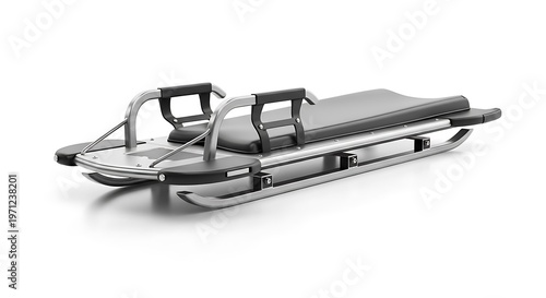 sled, winter, metal, transport, recreation, sport, handle, runner, seat, curve, isolated, object, white, equipment, snow, cold, leisure, fun, activity, vehicle, design, modern, grey, silver, studio, cut-out, background, product, commercial, lifestyle, play, children, family, season, adventure, travel