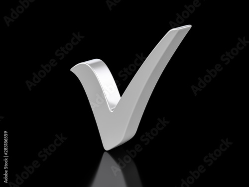 check, tick, silver, symbol, icon, signs, metal, three-dimensional, black, isolated, yes, vote, accept, ok, shiny, metallic, design, object, render