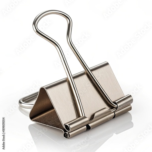 office supply, stationery, work tool, paperwork, minimalist, steel, clamp, white background, isolated, productivity, organizing, desktop, corporate, sleek, shiny, supply, contemporary, clean
