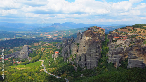 landscape, panorama, mountain, rock, travel, tour tourism, canyon, panoramic, scenic, landmark, beautiful, cliff, europa, stone, meteor, monastery, rock formation, greece, ancient