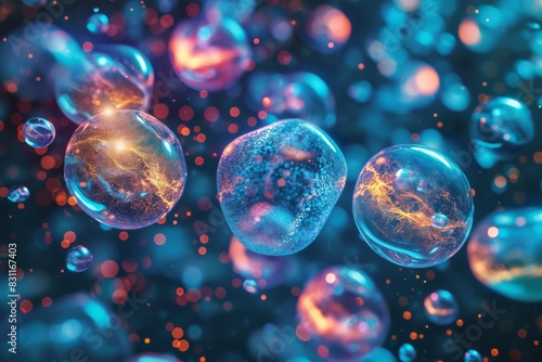 Microbiological cells, Cancer cells floating in a clear liquid, under a microscope.Ai generated