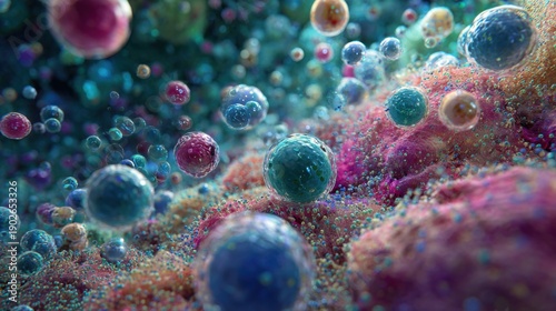 Microscopic view of colorful cells and organisms