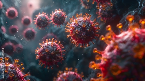 Microscopic View of Contagious Viral Particles Causing Pandemic Outbreak