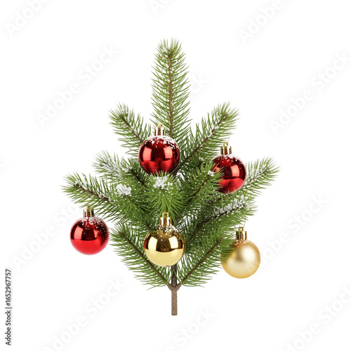 christmas, tree branch, bauble, ornament, red, gold, holiday, decoration, festive, snow, pine, green, mini, celebration, winter, traditional, shiny, sparkle, cheer, seasonal