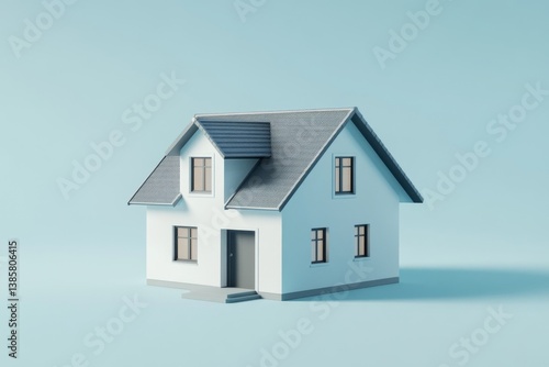 house, model, home, real estate, design, three-dimensional, architecture, miniature, render, property, modern, building, residence, new, real, estate, investment, sale, buy, family, living, room, exterior, tiny, small, illustration, digital, rendering, realistic, minimalist, contemporary, simple, light, blue, background, isolated, front, perspective, view, front view