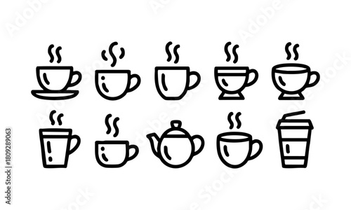 Minimal Coffee And Tea Outline Icons Set Vector illustration, easily editable.