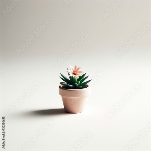Minimal small pot of haworthia plant with flower against white background , save the earth concept