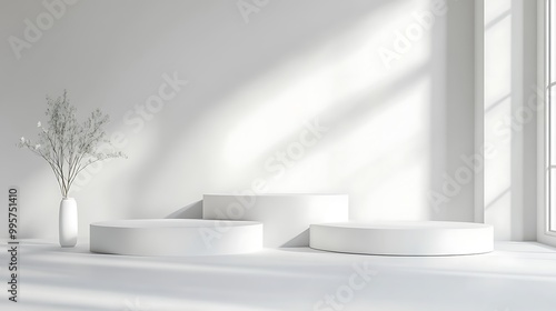 Minimalist Abstract Architecture with Pastel and Neon Lighting Featuring Geometric Shapes, Circular Platforms, and Soft Shadows for Futuristic and Artistic Stage Design