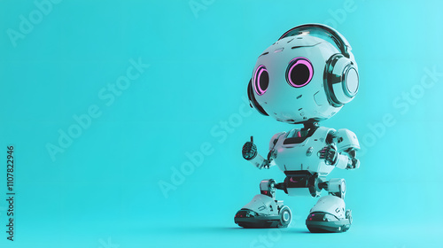 Minimalist AI Call Center Robot with Headset on Light Blue Background