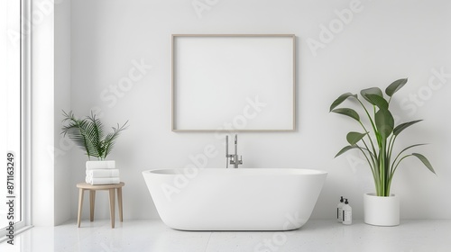 bathroom, minimalist, bright, accent, clean, interior, frame, three-dimensional, rendering, modern, design, decor, architectural, home, house, minimal, architecture, furniture, room, tile, mirror, sink, faucet, vanity, lighting, wall, floor, towel, accessory
