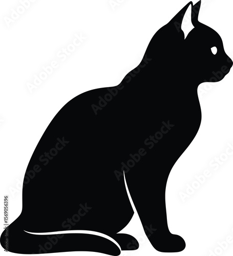 Minimalist Black Cat Silhouette in Side-Facing Crow-Like Pose, Vector Isolated on White