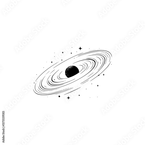 vector, black hole, space, universe, astronomy, celestial, galaxy, cosmos, illustration, line art, minimal, design, graphic, artistic, abstract, simple, modern, star, dot, orbit, ring, science, logotype, print