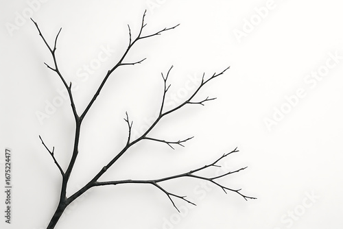 Minimalist Black Tree Branch on Clean White Background for Design